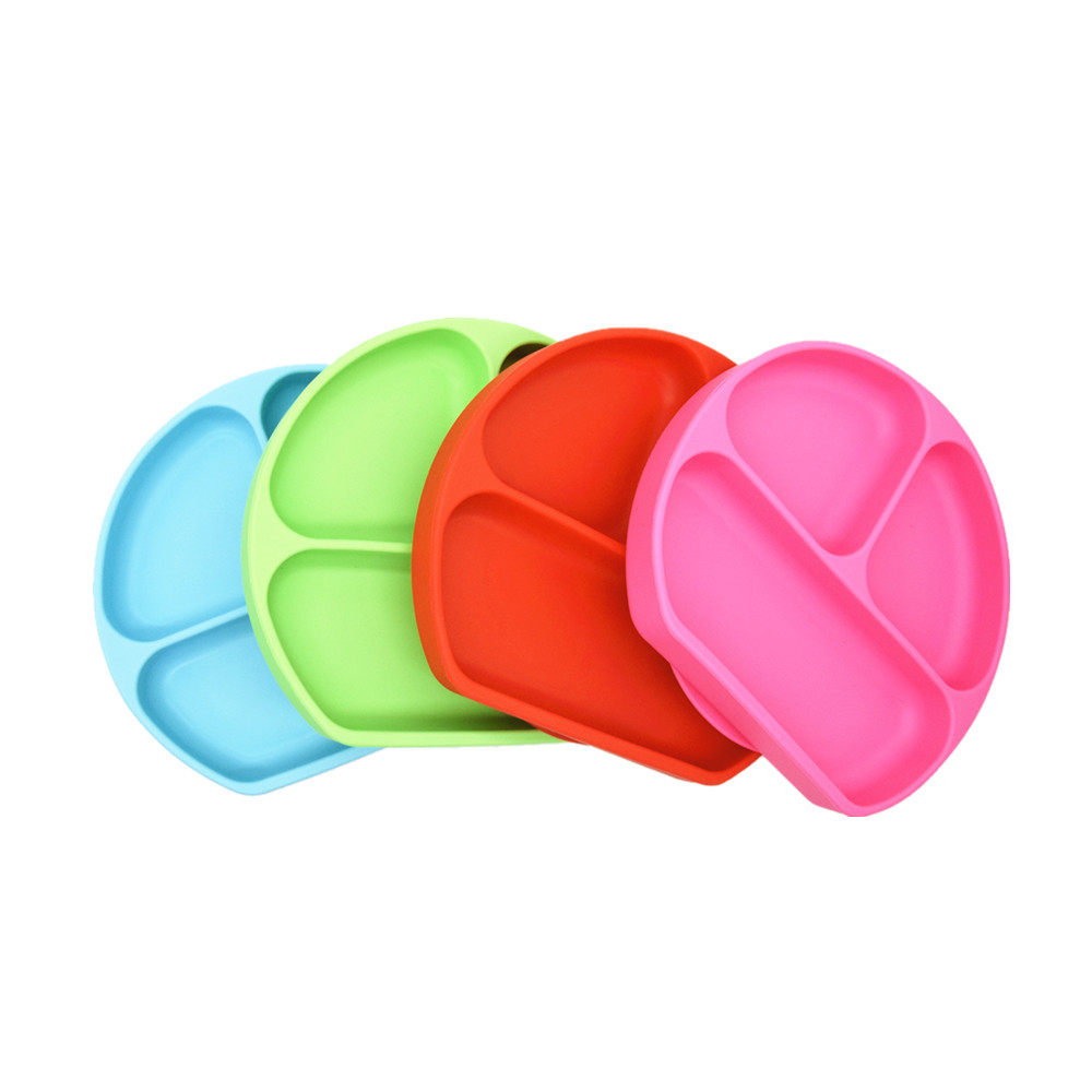 Kids Dinner Divided Silicone Grip Dish for Toddler Feeding Set Suction Bowl Anti Slip Silicone Baby Plates and Spoon Product Name | Silicone Baby Suction Plate | Style | Classic style |