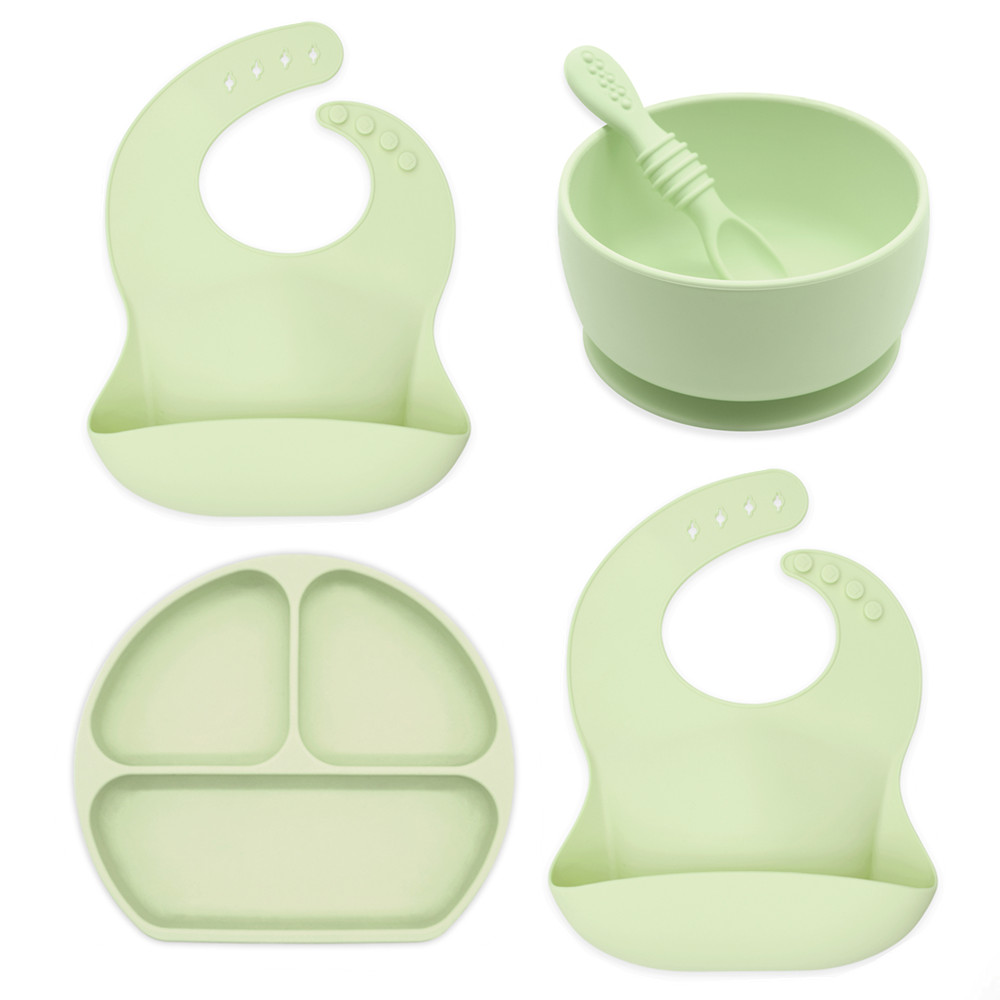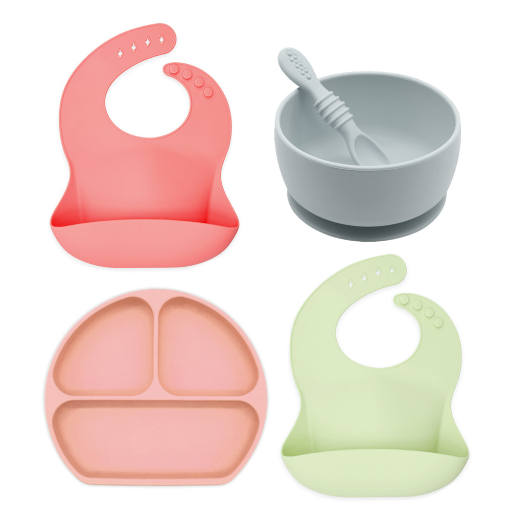 Kids Dinner Divided Silicone Grip Dish for Toddler Feeding Set Suction Bowl Anti Slip Silicone Baby Plates and Spoon
