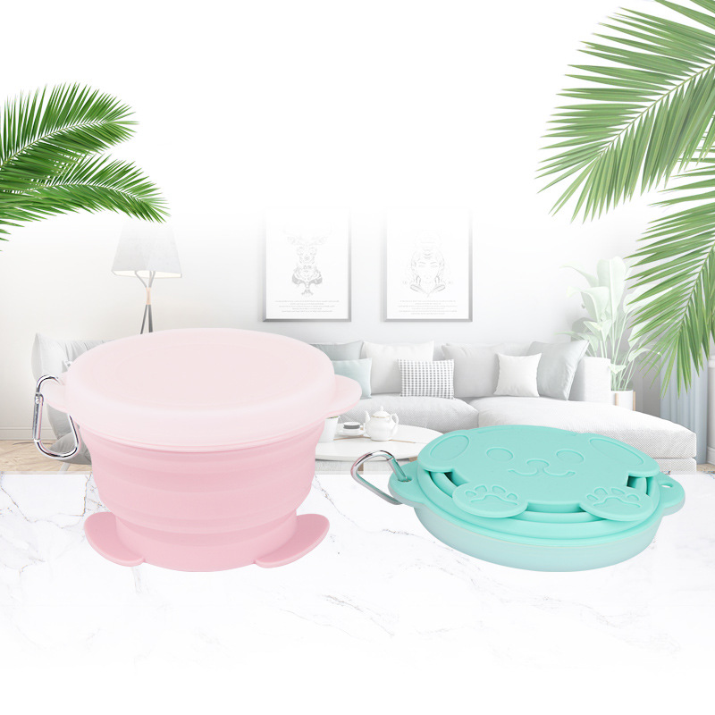 BPA Free Outdoor Travel Food Storage Set Collapsible Microwave Popcorn Bowl Silicone Bowl With Lid Clip