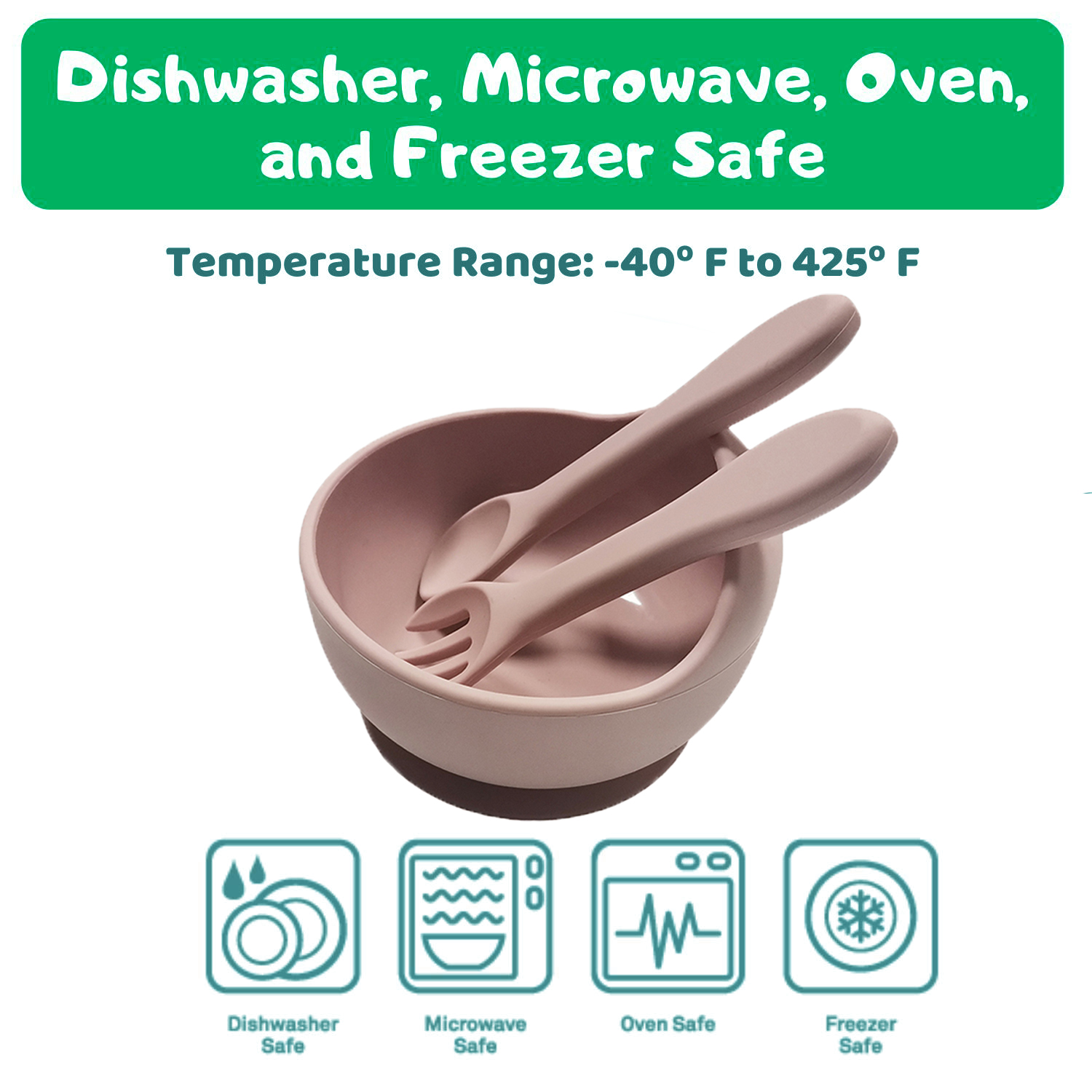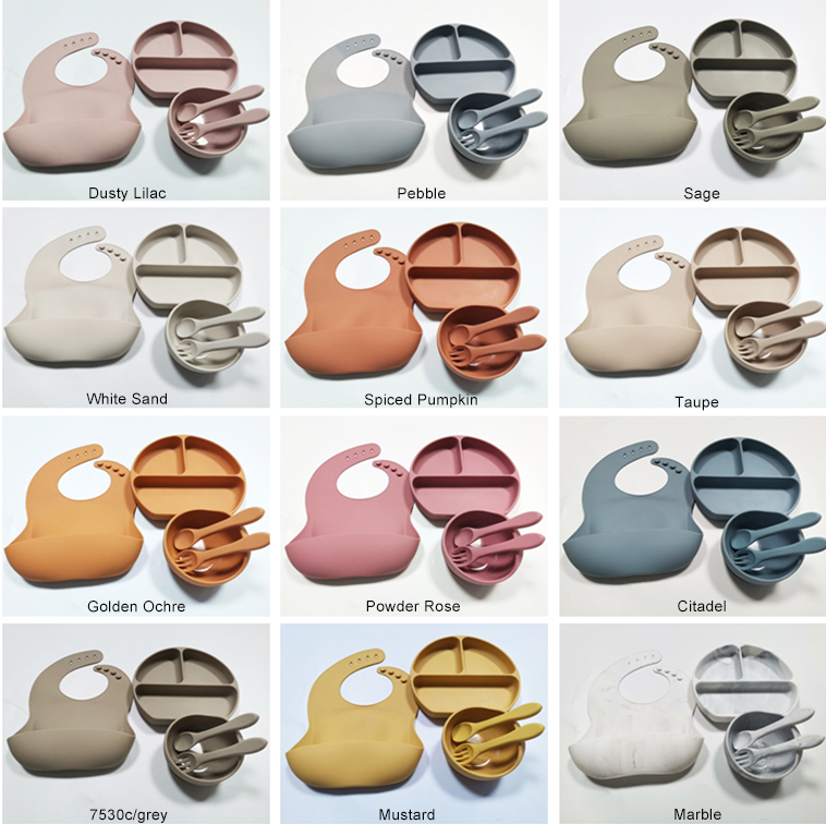 Feature | 100% food grade silicone, safe and non-toxic; High temperature resistance, can be put into microwave, freezer, oven, and top-rack dishwasher; There are suction cups at the bottom of bowls and plates to prevent food from overflowing due to rollover |
