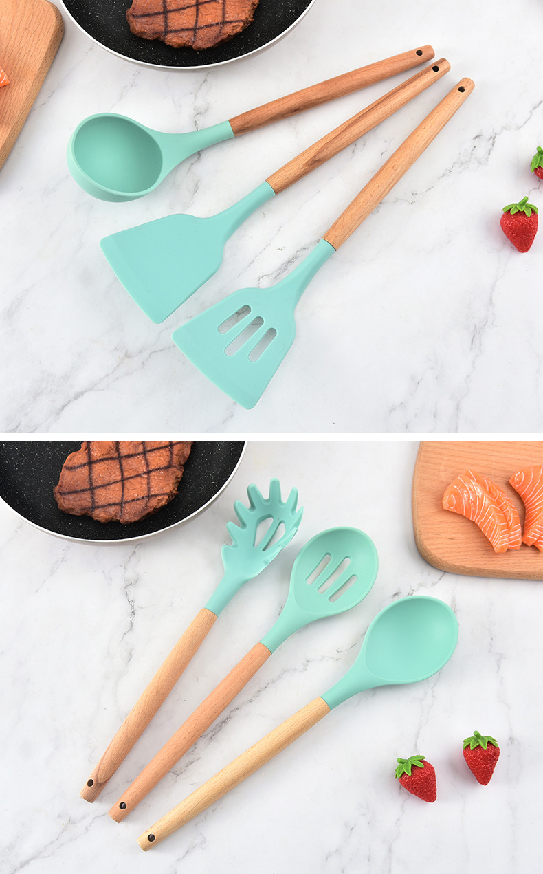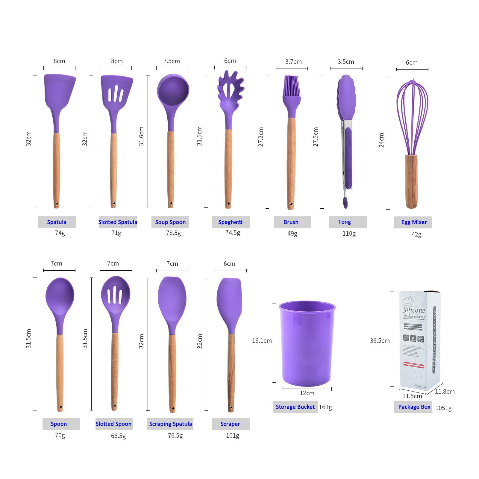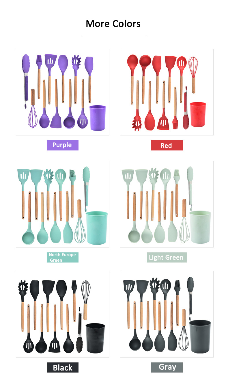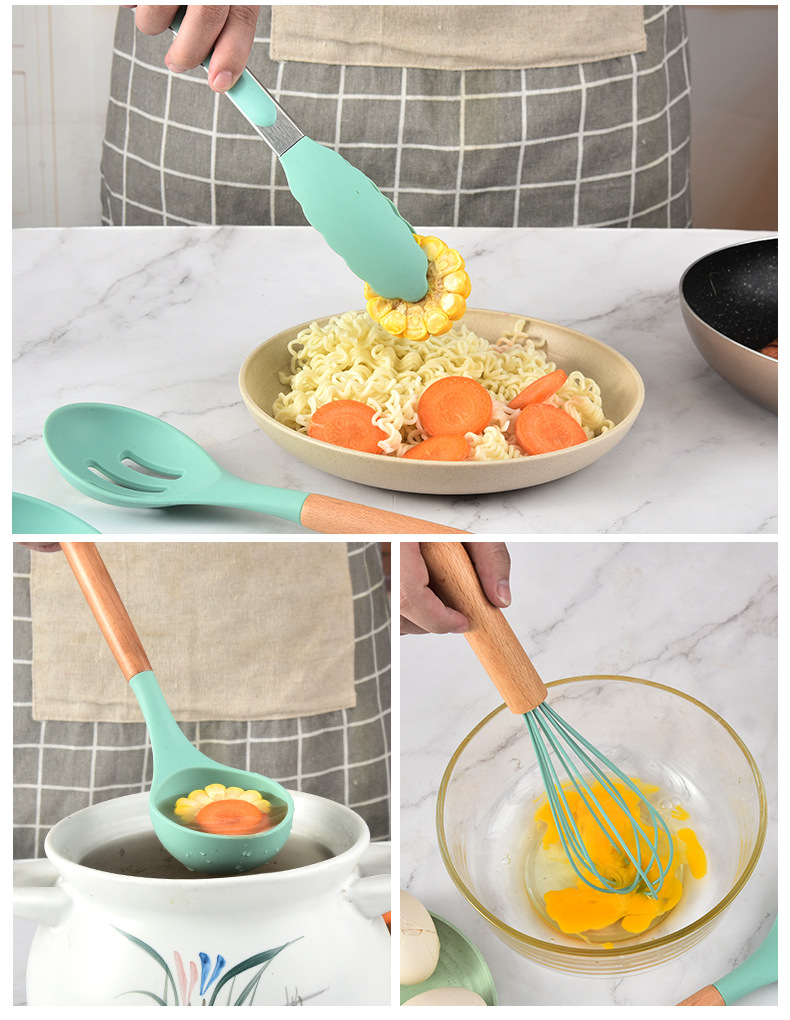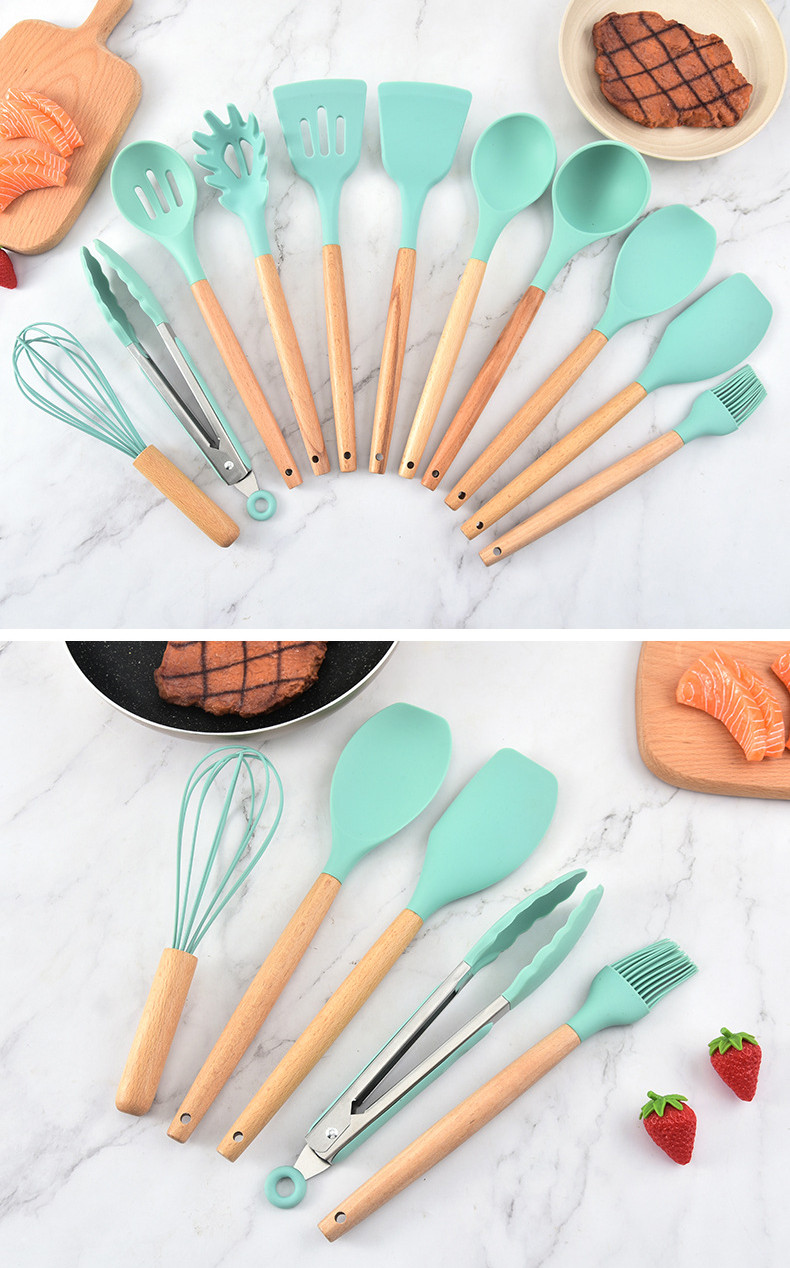 Using food grade silicone material , safe, non stick and heat resistant , 12 pieces utensils meet all your demands for kitchen cooking tools