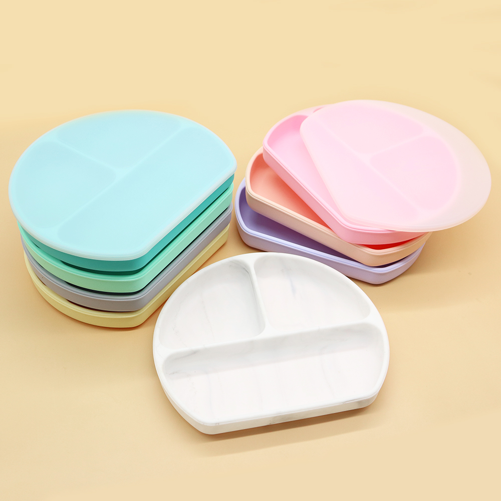bpa free eco bamboo wooden plate sets toddlers dinner divided food feeding kids suction put baby silicone plates