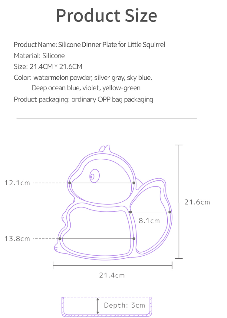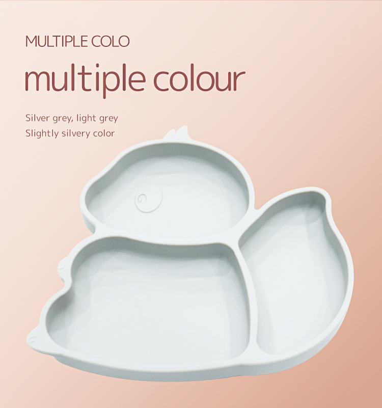 Amazon Bestseller Wholesale 100% Food Grade Squirrel Silicone Anti-Slip Divided Plate Kids Dinner Plate Silicone Baby Plate