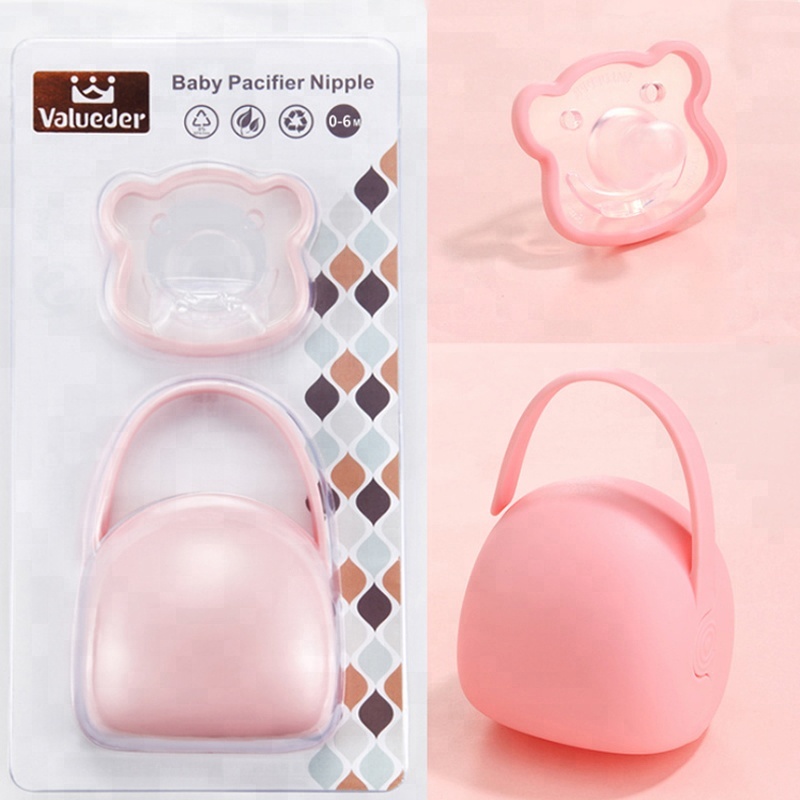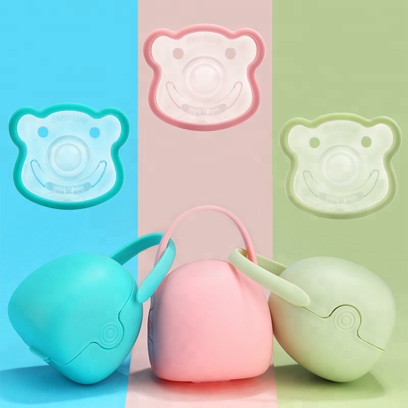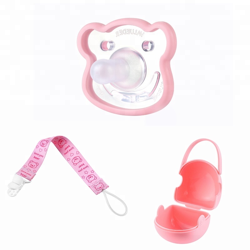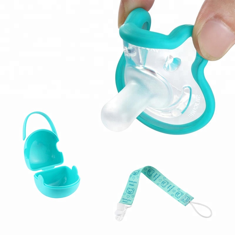 Wholesale 100% natural feel nipple full-silicone baby pacifier with pacifier clip and case