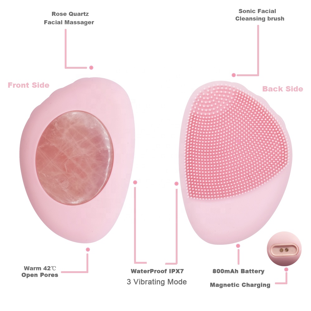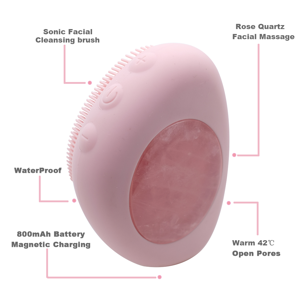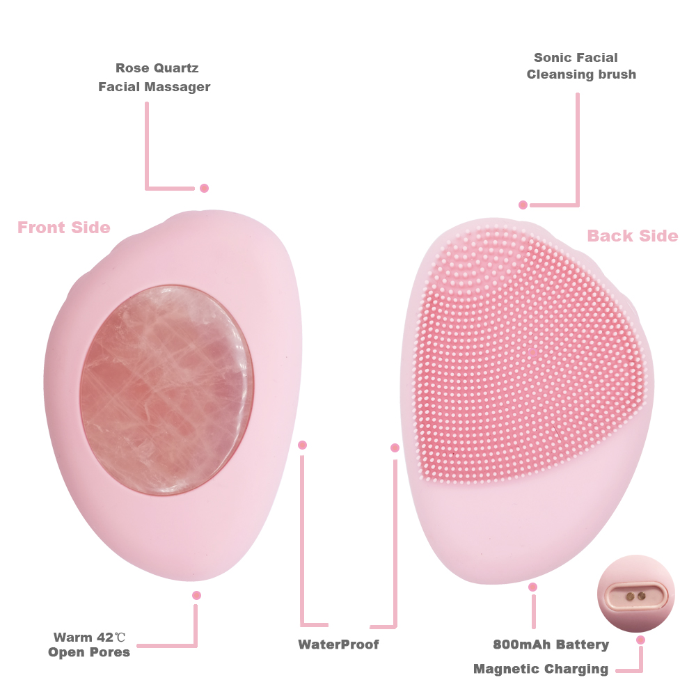 2 in 1 Sonic Facial Cleansing Brush with Rose Quartz Facial Massage